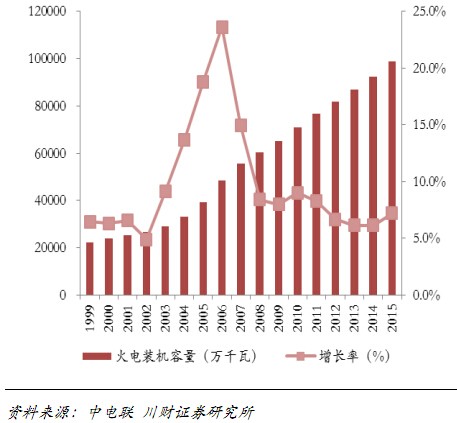 第一阶段是在1999~2007年,电改5号文成为主要的驱动事件,国家电力公司拆分成五大发电集团和两大电网公司,发电集团跑马圈地,大批的电源项目上马,从2002~2007年的火电投资潮为火电的发展奠定基础。