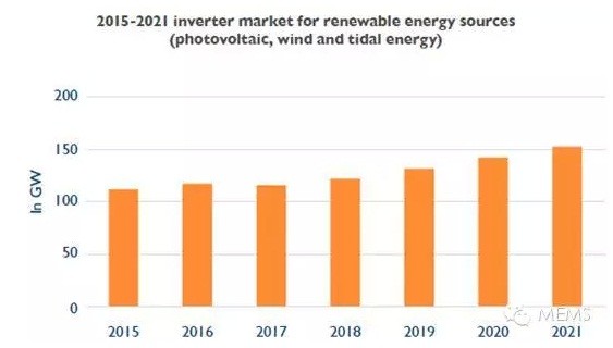 2015~2021年可再生能源的逆变器市场(光伏、风能及潮汐能)