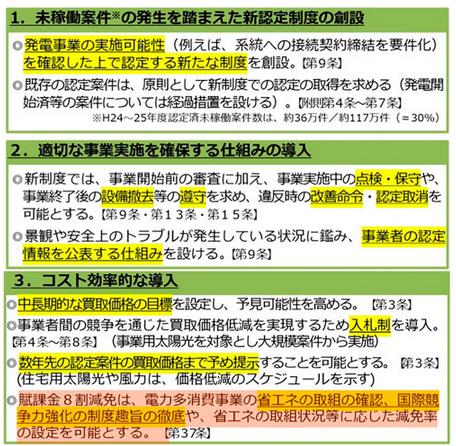 认证由现行的认证设备改为认证发电业务本身。新认证制度中,与电力公司签订并网协议成为一个重要事项。设定了一定的缓冲时间,原有项目在此期间内如果不能签订协议,就不能再适用新制度,最终就不能维持在现行认证制度下获得的收购价格。由此可一举清理取得了设备认证但未投入使用的滞留项目。