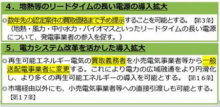 修正案就2017年度以后的收购价格的确定,新引入了“竞标制度”和“降价时间表”。竞标制用于一定规模以上的光伏发电,降价时间表面向住宅光伏发电和风力发电等。但竞标因只是在收购价格用竞标制有望降低时才用,所以是否应用要根据情况判断。