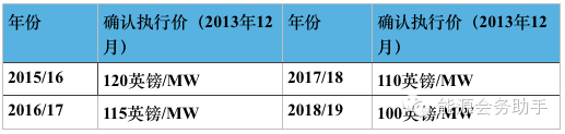 英国政府根据其新的“差价合约”(CfD)可再生能源支持系统,在2014年12月末对大型太阳能设定调整后的执行价格,并于2015年生效。该系统与现有的可再生能源责任认证计划重叠,大型太阳能目前根据ROC获得支持,ROC将运行到2017年。