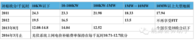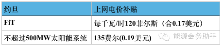 此前泰国的光伏补贴政策主要根据光伏电站项目大小进行补贴,泰国2015-2016年太阳能补贴政策份额及此前FiT见下图。
