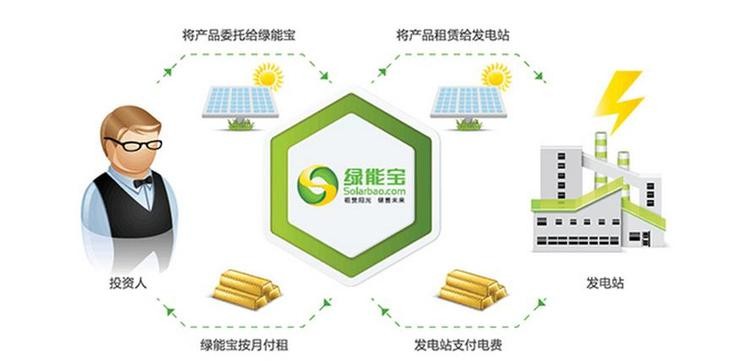 谈到融资模式,业界将绿能宝定义为一款集分布式光伏电站、互联网金融和委托融资租赁为一身的理财产品。说到这里,光伏小白们是否就已经开始犯难了?没关系,南度度小编从绿能宝官网上扒来一张解释绿能宝委托融资租赁模式的图(见下方),咱们看图说话: