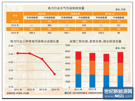 在电力行业二氧化硫、氮氧化物和烟尘排放总量方面,环保部数据显示,虽然火电行业烟尘排放在2014年也出现了反弹,但波动幅度较小,低于17万吨。电力行业三种大气污染物合计排放量仍然表现出大幅下降的良好趋势。