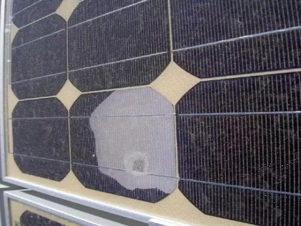 热斑是指组件在阳光照射下,由于部分电池片受到遮挡无法工作,使得被遮盖的部分升温远远大于未被遮盖部分,致使温度过高出现烧坏的暗斑。光伏组件热斑的形成主要由两个内在因素构成,即内阻和电池片自身暗电流。