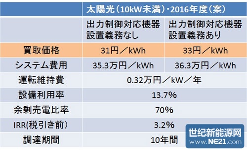 关于2016年度光伏发电(不足10kW)采购价格和采购期的委员长草案(出处:日经BP社根据经济产业省的资料制作)