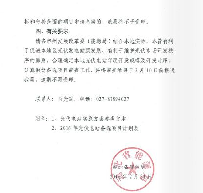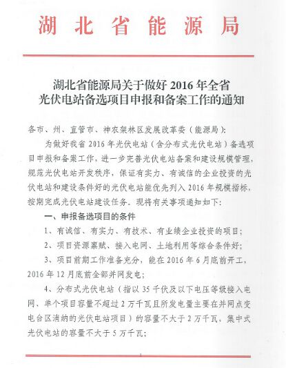 原标题:湖北省能源局关于做好2016年全省光伏电站备选项目申报和备案工作的通知