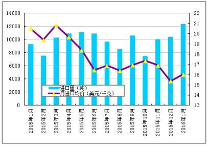 图1 2015年1月-2016年1月多晶硅进口量及进口均价示意图数据来源:海关