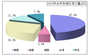 据分国别进口数据显示。1月份总进口量为12388吨,同比增加18.6%,其中自韩国、美国、德国、台湾四个地区共进口多晶硅11412吨,占总进口量的92.1%。其中从韩国进口量为5897吨,占总进口量的47.6%;从美国进口量为690吨,占总进口量的5.6%;从德国进口量为3467吨,占总进口量的28.0%;从台湾进口量为1358吨,占总进口量的11%;其他地区进口量为975吨,占总量的7.9%。