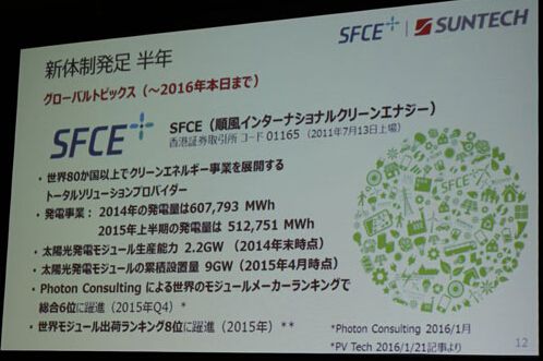 高社长表示,该公司2015年日本的销售额暂定值比上一年增长了约15%。按输出功率计算的供货量也比上年增长约14%。日本的销售额比例占无锡尚德电力的10~15%。