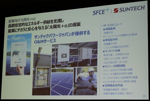 尚德电力日本将提供包括持牌电工的检查在内的综合性O&M服务。除了远程监控、发电量分析、现场检查、定期制作报告等之外,提供太阳能面板厂商才有的太阳能电池板精密调查也是该公司的一大特点。将利用长野技术支持中心积累的知识和检查技术。