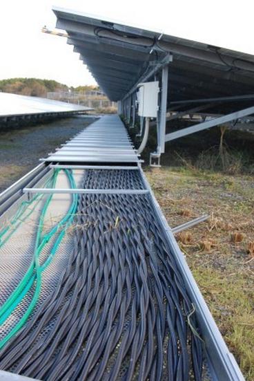 福冈县田川市大型光伏电站光伏面板下设置的输电电缆