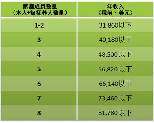 图2:加利福尼亚州参与CARE项目的年收入标准(出处:Junko Movellan根据加州的资料制作)