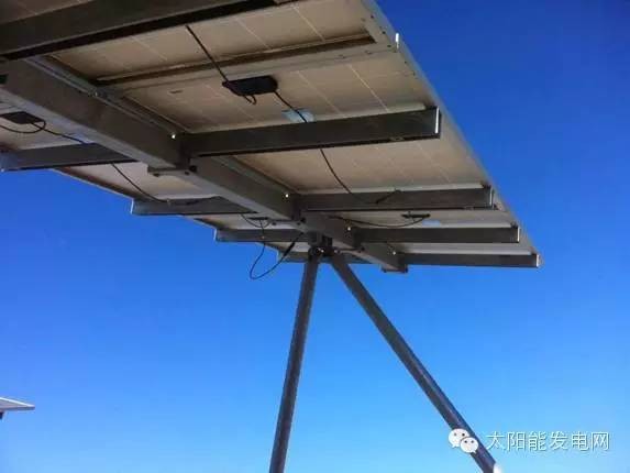 走出主控室往南,穿过几个固定式光伏方阵,眼前便出现一大片跟踪电站。在湛蓝的天空下,它们排列齐整,一致正对太阳,显得格外宏伟、壮观,成为茫茫戈壁上一道独特的风光。此情此景,不由让我想起了多次在文献资料中见到的国外跟踪电站,都是湛蓝的天、明亮的阳光、整齐划一的跟踪系统,以及蓝黑色光伏电池板直指蓝天。我被眼前的景象深深触动了。