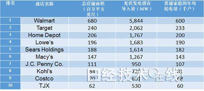排名前十的仓储式商店合计,店铺面积达到20亿平方英尺,相当于纽约曼哈顿的两倍(图2)。光伏发电装机总容量可达到17GW。