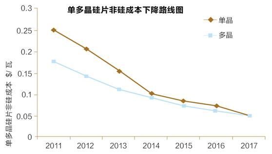 下一页>价格下跌后,单晶产品的吸引力不止放大了一倍。随着单晶硅技术进步以及成本下降,单晶硅目前也逐渐成为光伏开发商选择的路线。这其中最重要的一点是,对于电站运营商来说,度电成本降低逐渐成为共识。多晶组件价格低的优势已经不如以往。