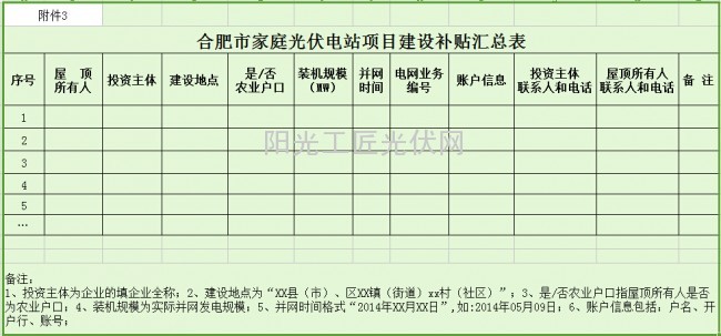 (5)《合肥市家庭光伏电站项目建设补贴汇总表》(附件3)。