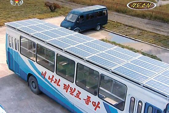 原标题:朝鲜大力发展太阳能发电 公交上安装太阳能板