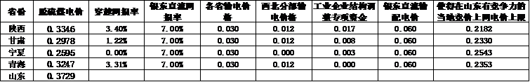 要讨论各省份间的竞争差异,主要需要讨论各省份上网点到银东直流上网侧的输电费用及网损率差异。而要讨论各省份参与电力交易竞价上网的价格上限,则要从山东落地侧价格向上反推。
