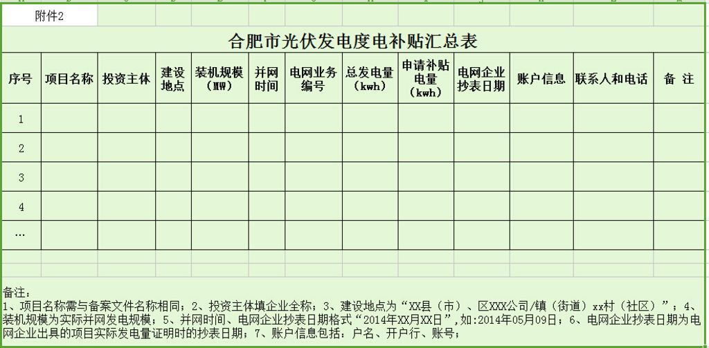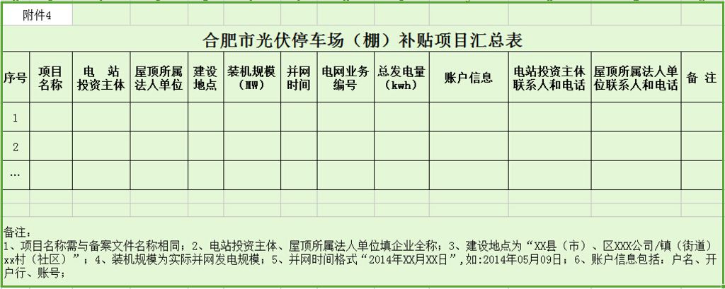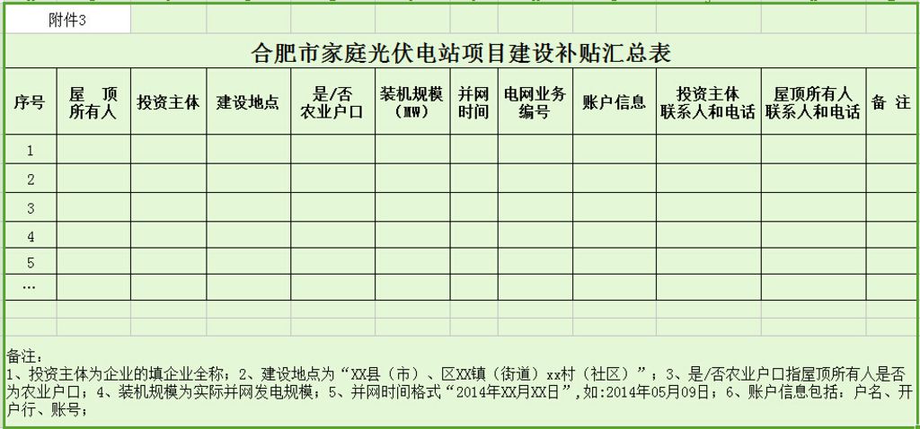 (5)《合肥市家庭光伏电站项目建设补贴汇总表》(附件3)。
