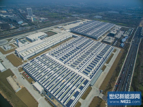 空中俯瞰杭州余杭区长江汽车有限公司20万平方米的屋顶光伏发电项目(3月15日摄)。从3月上旬开始,浙江省内最大的彩钢瓦屋顶光伏发电项目——杭州余杭区长江汽车有限公司屋顶光伏发电项目顺利并入余杭电网发电,试运行10天时间里已经累计发电近20万千瓦时。杭州余杭区长江汽车有限公司屋顶光伏发电项目依托20万平方米的厂房屋顶,总装机量8.68兆瓦,采用自发自用、余电上网的模式,预计年均发电量800多万千瓦时,短期内可以满足该企业80%的用电需求。2015年,杭州市余杭区累计新增光伏项目20个,已完成并网容量50兆瓦,年发电量达6000万度,与同等规模火电相比,可节约标准煤2.4万吨,减少二氧化碳排放5万吨,有效优化能源结构,促进节能减排。新华社记者 徐昱 摄