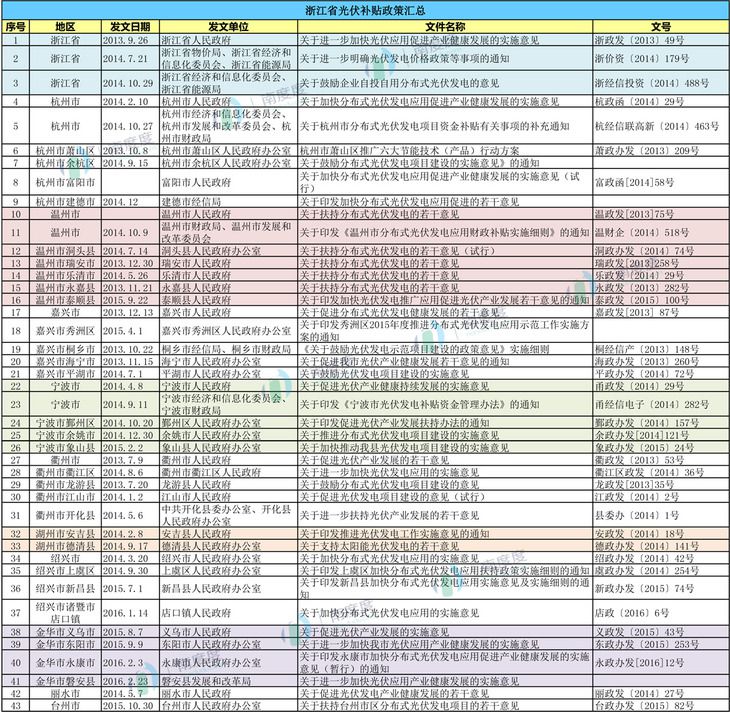 浙江省光伏产业的发展离不开光伏政策的支持。自2013年以来,浙江省及各市县纷纷出台光伏政策,鼓励、支持、补贴光伏发电,其政策之多、补贴力度之大,也是其他省所不及的。光伏是政策性的市场,这点在浙江省体现得最彻底。