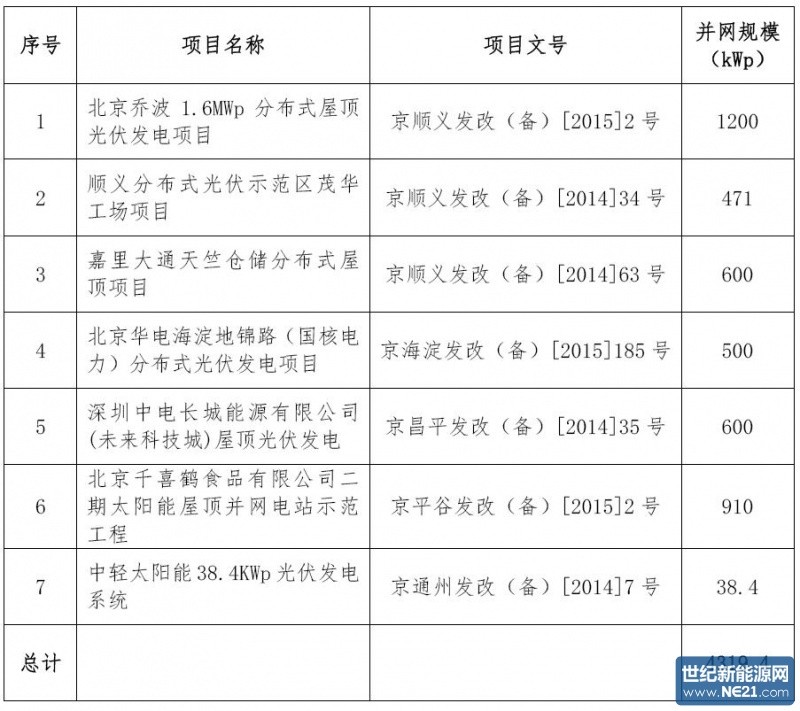 2016年3月14日,北京发改委发布《关于公布北京市分布式光伏发电项目奖励名单(第一批)的通知》京发改[2016]394号文件。
