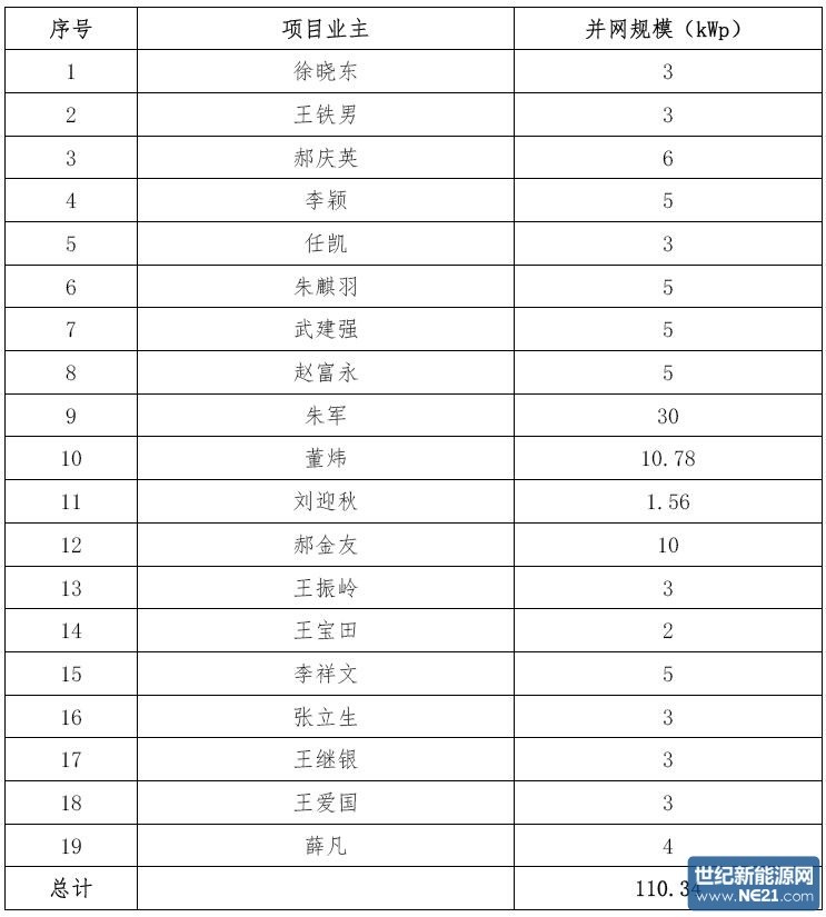《北京市分布式光伏项目奖励名单(自然人,第一批)》项目表