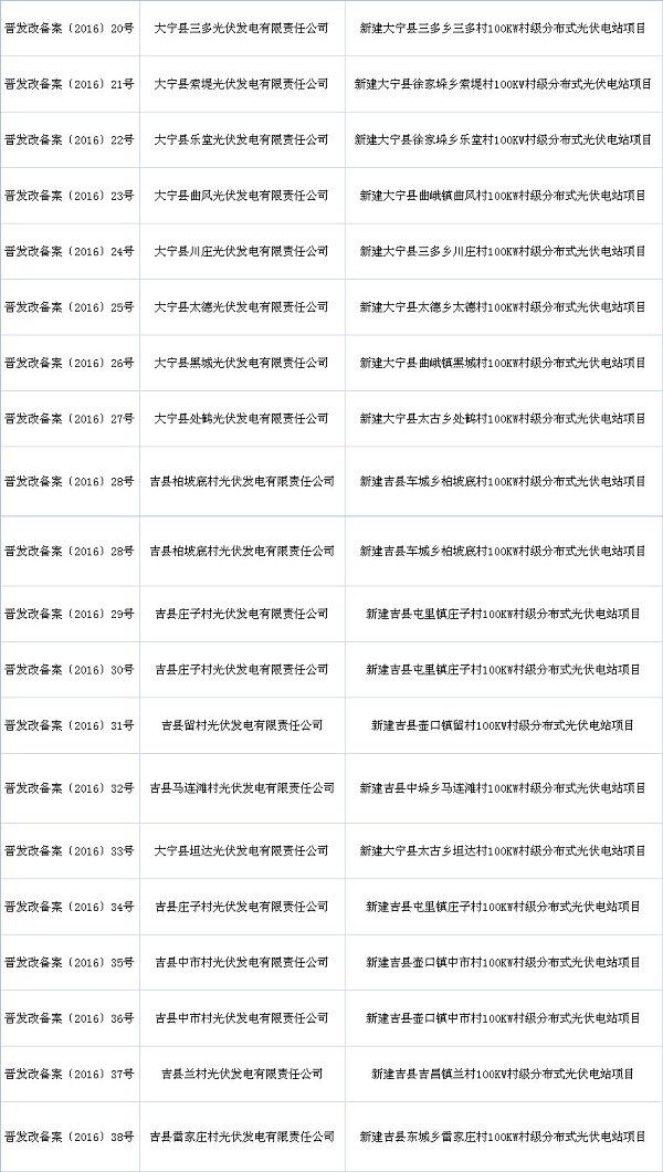 近日,山西省发改委公布了2016年2月份重点项目备案名单,名单中共有22个重点建设项目,其中光伏项目19个,累计装机容量1.9MW。