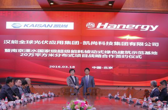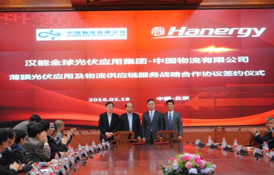 会议现场,中国物流、天津开合、张家口圣能、凯尚科技集团四家企业与汉能完成签约,即将启动以“国家级超级能耗被动式绿色建筑示范基地”为代表的一大批分布式电站项目。中国物流有限公司董事长梁伟华表示:“此次与汉能的合作是我们在新能源发展战略上的里程碑,双方将秉承互惠共赢的原则,充分发挥各自优势,共同推进‘金屋顶行动’以及分布式电站在中国物流的落地。”。