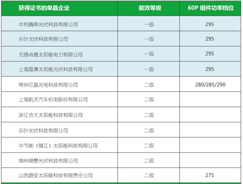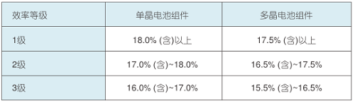 晶硅光伏组件企业要成为领跑者,其组件产品必须达到相应效率等级对应的转化效率的要求(如下表)。