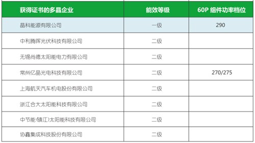 5家企业获得光伏领跑者一级能效证书,而晶科是唯一取得多晶一级能效证书的企业;晶科一级能效多晶产品较行业平均水平高10-15W