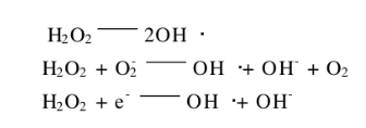 过氧化氢能够单独与过氧离子作用或捕获电子而产生羟基自由基: