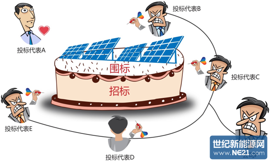 目前屡屡见诸报端的光伏行业招标乱象主要有围标、陪标、萝卜招标、最低价中标以及暗箱操作等,其中行业内最为猖獗的现象是围标,也称为串通招标投标。它是指几个投标人之间相互约定,一致抬高或压低投标报价进行投标,通过限制竞争,排挤其他投标人,使某个利益相关者中标,从而谋取利益的手段和行为。