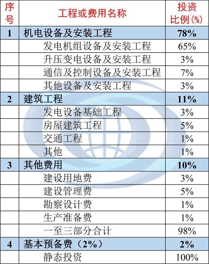 以某地面光伏发电项目为例,整个光伏发电项目的总体费用构成及比例大致如下: