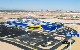 宜家选择螺旋电气公司为拉斯维加斯的定制太阳能发电系统提供开发、设计和安装。R&O Construction负责管理现场工作和实际店面的修建工作,反映出宜家家居全球知名的独特建筑风格。