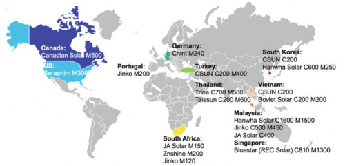 在美国、欧洲接连对中国用“双反”这样不正当手段遏制中国光伏行业发展后,许多光伏组件厂商纷纷在国外设厂。