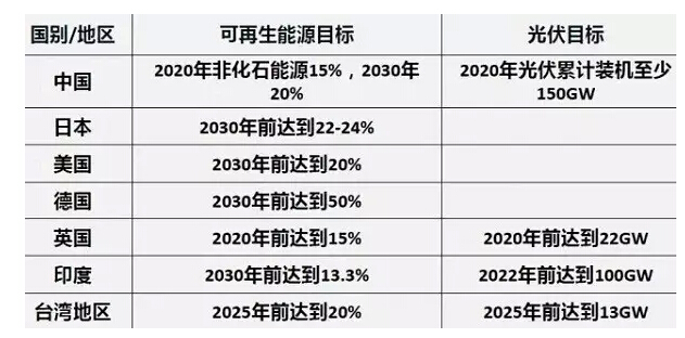 全球新能源产业发展趋势也在为中国光伏企业的“走出去”创造客观条件。比如,不少国家已制定可再生能源发展目标,除了中国外,德国、日本、美国亦分别计划到2020年将该比重提至到35%、20%、20%。泰国则计划到2021年该比重达到25%。东非和南部非洲,到2030年该比重达到40%。