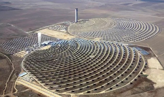 从上面看,它像排列整齐的复古视频游戏的图形。它包含900万块镉碲太阳能模块,覆盖5.6平方公里面积,是世界上最大的光伏电站之一。在2014年11月投入使用,550兆瓦的发电厂可以产生足够18万住房全速运行的电力,能够取代407000吨二氧化碳排放量。