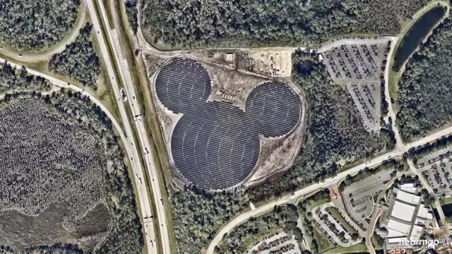 当迪士尼乐园决定建立自己的太阳能农场的时候,你期待的是什么呢?目前农场在加州附近弗罗里达华特迪士尼乐园,由杜克能源正在建设中。太阳能农场包含大约48000块太阳能电池板,排成有标志性的米老鼠耳朵的形状。此太阳能农场预计在2016年春天开始使用,为华特迪士尼世界和附近地区供能。