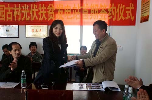 3月31号,绥宁县关峡苗族乡大园村村委会传出阵阵掌声,庆祝该村与湖南科比特光伏发电有限公司成功签约100KW分布式光伏扶贫项目。这是邵阳市首个100KW规模的光伏扶贫项目落户绥宁古苗寨,项目完工后,将帮助该村累计收益250万元。