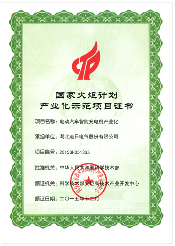 近日,中华人民共和国科学技术部下达了2015年度国家火炬计划项目名单,追日电气的“电动汽车智能充电机产业化”项目成功入选。