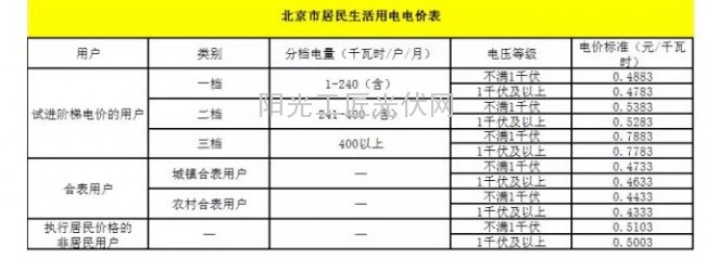 2015年北京市发改委公布的北京市居民生活用电电价表