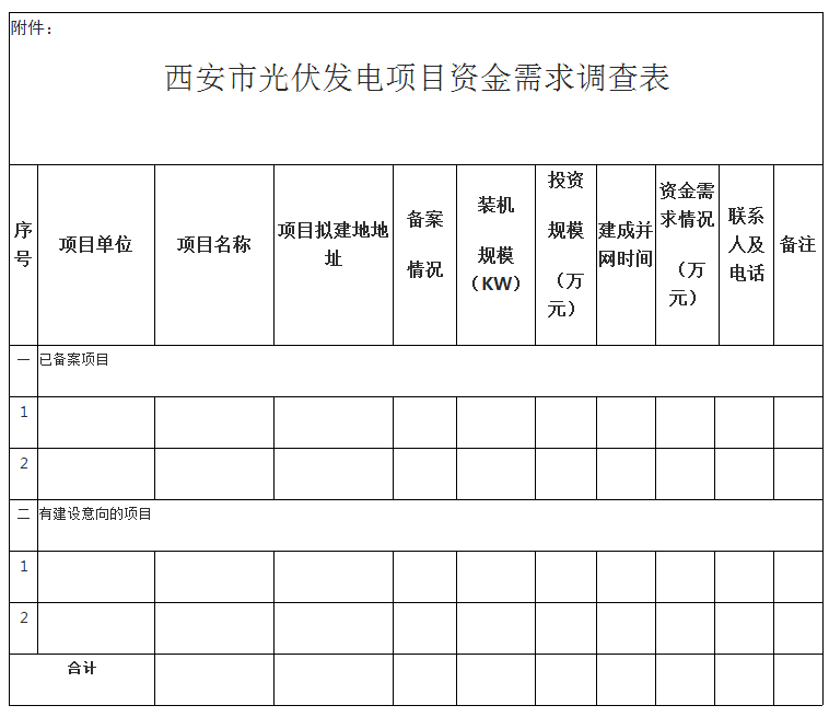 为推进西安市分布式光伏发电应用,市发改委拟召开银企对接座谈会,邀请有关银行和光伏发电企业进行对接,商讨和解决光伏发电项目融资难题,促进光伏发电项目顺利建设。请各有关部门通知本系统内有建设意向的光伏发电项目业主(含个人业主);各镇街、开发区通知辖区内已备案或有建设意向的光伏发电项目业主(含个人业主),将有贷款需求的光伏发电项目业主(含个人业主)参会名单于4月11日前报我局环资科。具体开会时间另行通知。