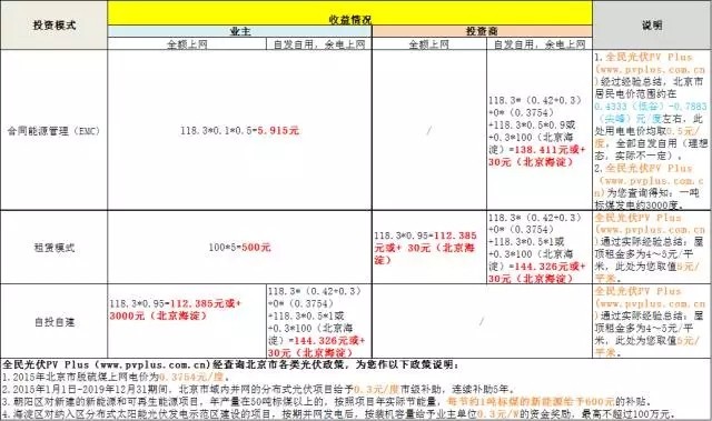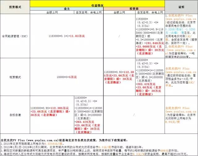 若您在北京市有一面积为1万平米的工商业屋顶(电价可参考上表),则其装机容量或为1MW,年发电量或为118.3万度(中间过程取值均为估算值,因此与实际情况或有出入。如需针对具体项目进行精准设计、测算,可联系全民光伏PVPlus为您提供免费开发顾问服务),则您的收益可能为: