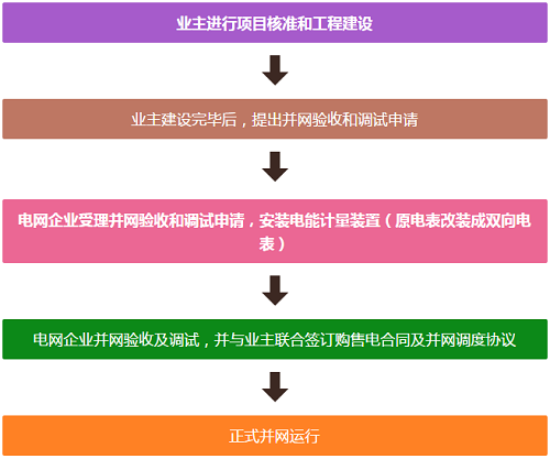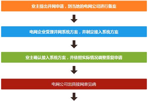 并网申请流程个人用户需要带上身份证、户口本、房产证等相关材料办理,企业用户带上营业执照、个人户口本、土地证、房产证、项目材料等相关材料到当地供电营业厅办理申请