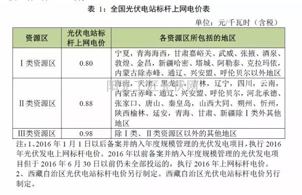 光伏电站:根据各地太阳能资源条件和建设成本,将全国分为三类标杆上网电价区,相应制定光伏电站标杆上网电价。