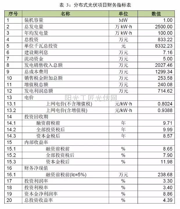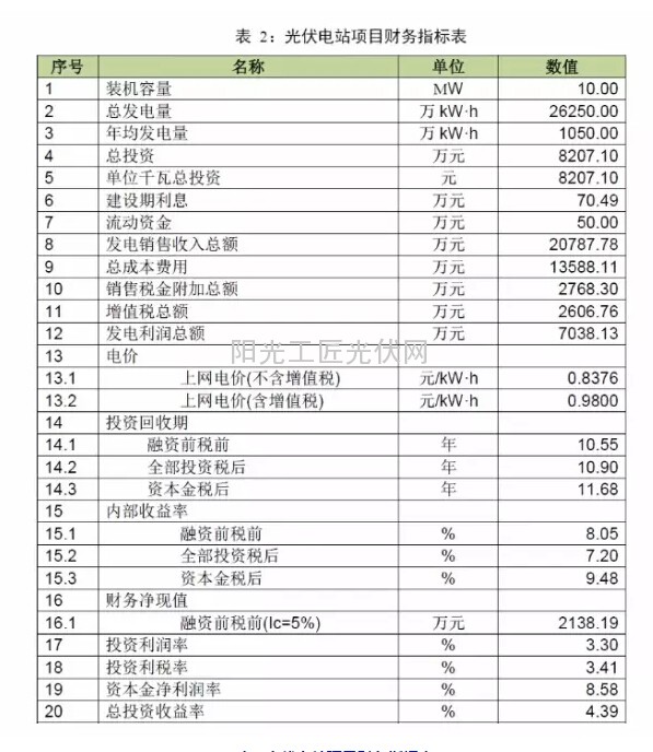 广东对应的光伏标杆电价为0.98元/kWh,假设项目装机容量为10MW,单位造价8000元,依据以上条件测算,项目融资前税前收益率在8.05%之间,投资回收期在10.55年之间,项目盈利能力一般,投资建设时应注意资源分析,采取多种措施降低投资以保障收益。具体见下表。