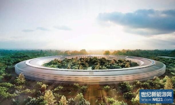 新总部大楼为环状建筑,中间是大型庭院,主建筑采用太阳能板。