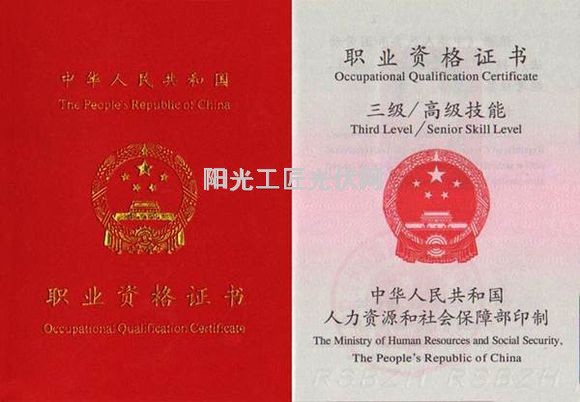 2、《太阳能利用工国家职业资格证书》(高级技能/三级),证书考试费 600 元/人。